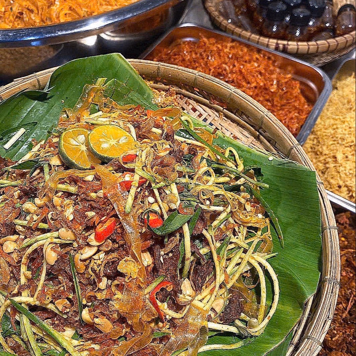 🥩 Khô bò đậm đà: Miếng khô bò được tẩm ướp gia vị đậm đà, xé sợi vừa ăn, thơm nức mũi.