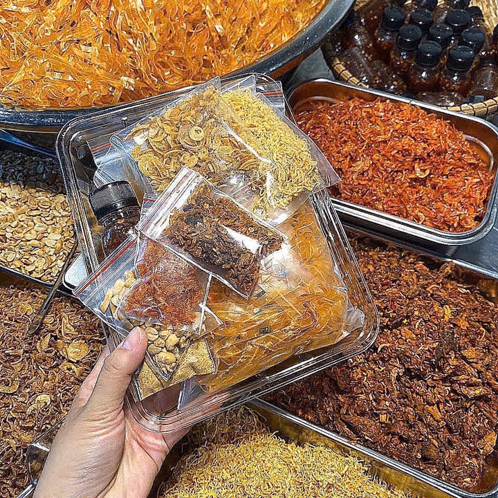 🧅 Hành phi giòn rụm: Hành phi nhà làm, giòn tan, thơm lừng, “topping quốc dân” không thể thiếu.