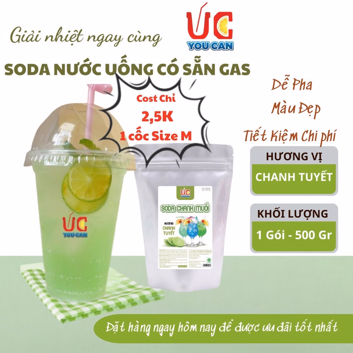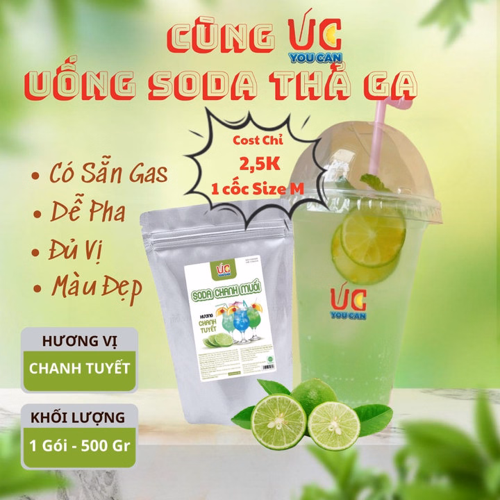 Soda Chanh (1 gói 500gr) Soda Uc, Nước Uống Giải Khát Có Sẵn Gas, Không Cần Siro và Nước Có Gas, Đủ Vị, Thơm Ngon, Dễ Pha