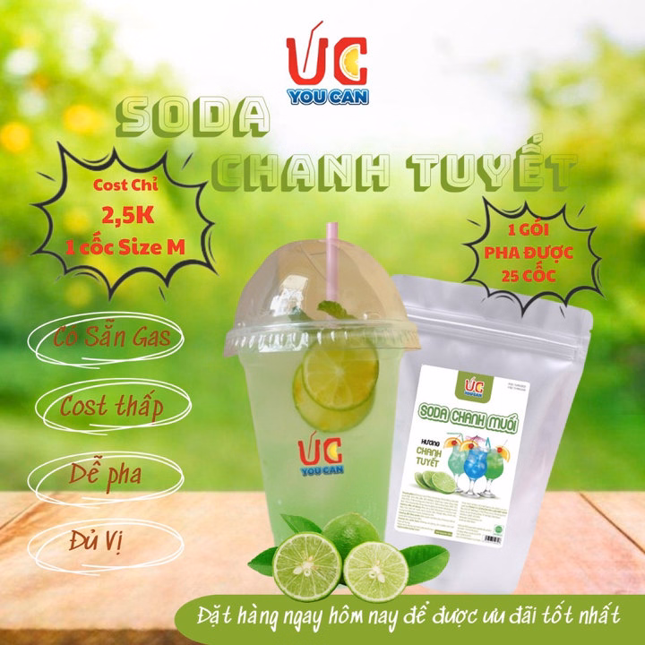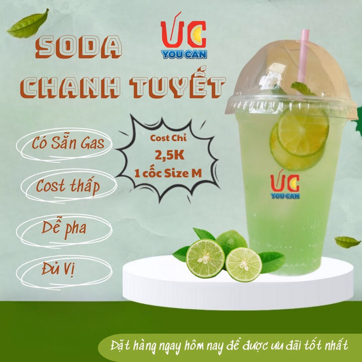 Soda Uc khi pha không bị ngọt gắt , không cần đến chanh hay nước có gas mà vẫn cực kỳ nhiều gas với giá thành trên mỗi ly cực kỳ thấp.