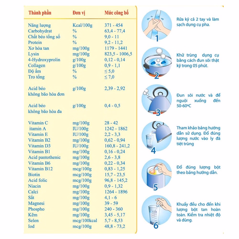 – Canxi caseinat, sucromalt, đạm đậu nành tinh chế, maltinol, đạm sữa cô đặc