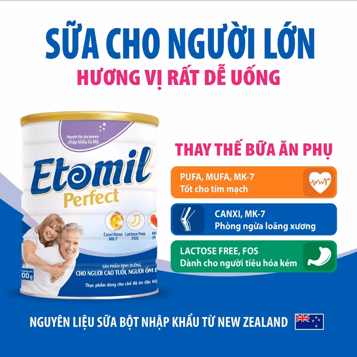 Sữa Etomil Perfect Cho Người Lớn Tuổi, Người Ốm Bệnh Dinh Dưỡng Vàng Cho Người Cao Tuổi, Hương Vị Dễ Uống