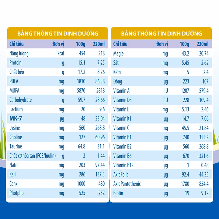 Canxi, Mk-7 : giúp củng cố hệ xương, phòng ngừa còi xương ở người trung và cao tuổi. Canxi nano có khả năng hấp thu canxi tốt hơn, kết hợp Mk7 giúp tăng khả năng huy động Canxi vào xương, nhờ đó xây dựng và bảo vệ hệ xương 1 cách hiệu quả