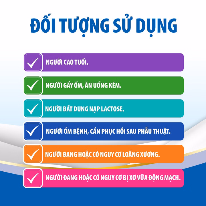 Người cao tuổi, người ốm bệnh, người cần phục hồi sau phẫu thuật, người gầy yếu, ăn uống kém