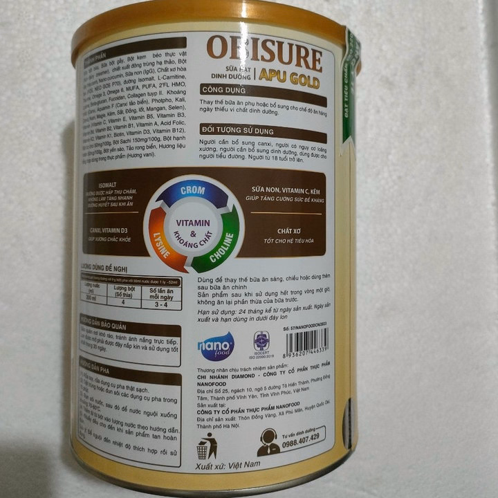 Sữa Hạt Dinh Dưỡng Obisure Apu Gold Bổ Xung Dinh Dưỡng ,Ngừa Loãng Xương,Tốt Cho Tiêu Hóa – Nano Food