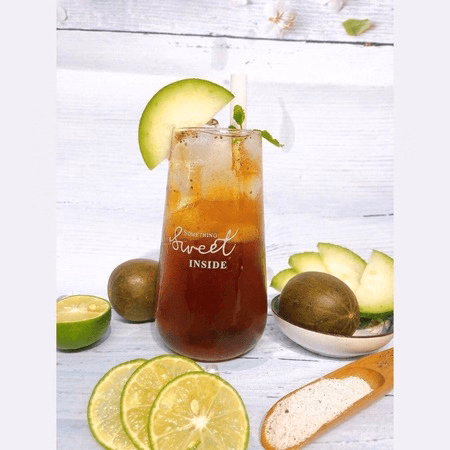 Hòa 20 g trà với 200ml nước mix thêm đá vào cốc 500ml (size M), khuấy đều và thưởng thức.
