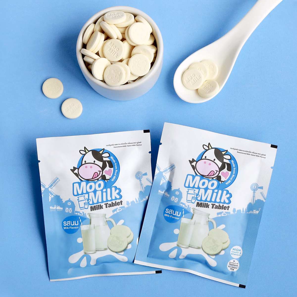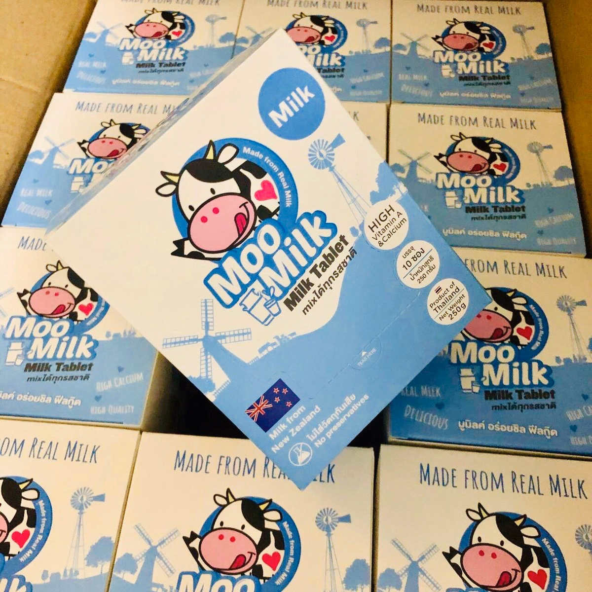 Kẹo sữa Moo Milk là một loại sữa viên có tỉ lệ sữa cao tới 72%, nguồn sữa nhập khẩu từ New Zealand. Chỉ cần ăn 6 viên đã tương đương với 1 ly sữa bạn uống hàng ngày.