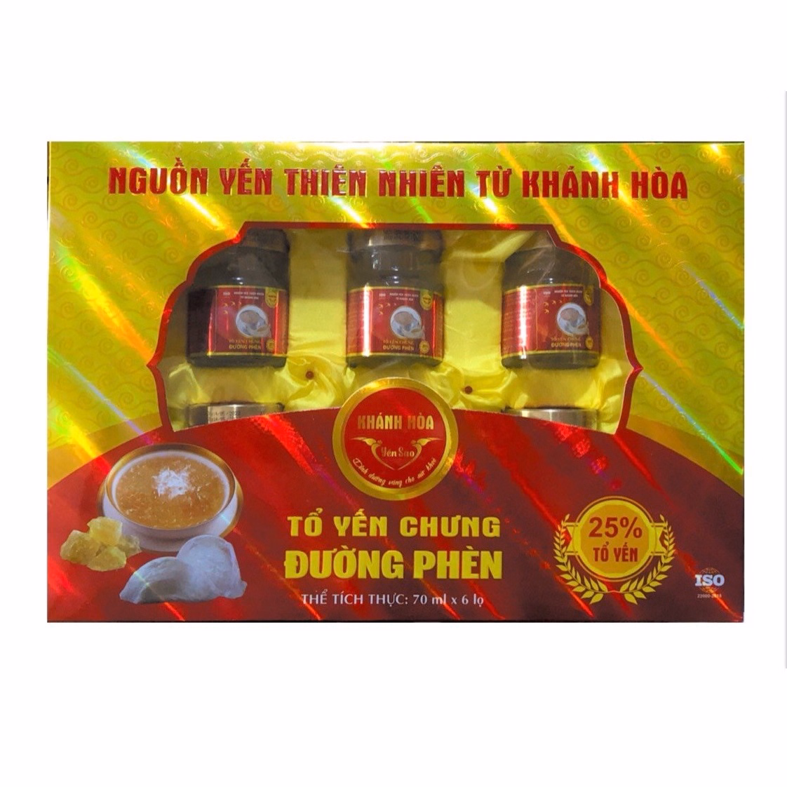Tổ yến chưng đường phèn Khánh Hòa là sản phẩm tổ yến chưng với hàm lượng yến 25%, đường phèn loại 1. Mang lại sản phẩm chất lượng, vị thanh mát và bổ dưỡng.