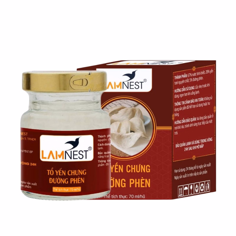 Yến sào cao cấp Lamnest với hàm lượng yến cao lên đến 30% kết hợp cùng đường phèn giúp giảm căng thẳng, mệt mỏi, tăng sức đề kháng.
