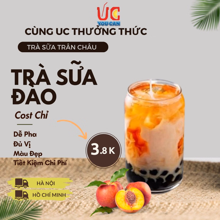 – Trà sữa Đào được chiết xuất từ lá trà tươi được chọn lọc kĩ càng, hương vị đậm đà đem lại cho bạn cảm giác sảng khoái, tươi mát chính