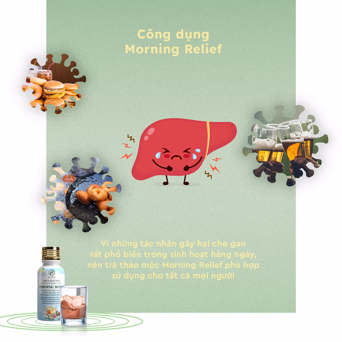 Nhận thấy nhu cầu hỗ trợ gan tại Việt Nam do việc tiêu thụ nhiều rượu bia và thói quen ăn uống thiếu cân bằng, Herbio đã nghiên cứu sản xuất dòng sản phẩm Trà thảo mộc Morning Relief với giá cả phù hợp so với các sản phẩm nhập khẩu hiện có trên thị trường. Không chỉ dành riêng cho người uống rượu bia, trà Morning Relief còn phù hợp sử dụng hằng ngày để bổ trợ cho gan, giải độc và lấy lại năng lượng cho cơ thể.