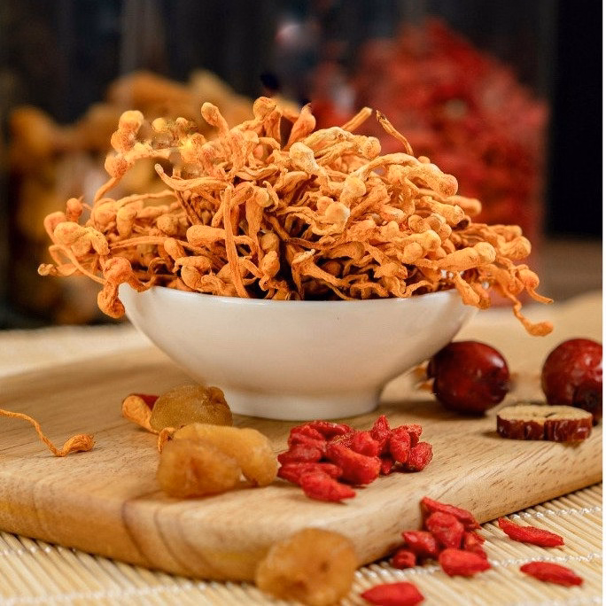 Nấm đông trùng hạ thảo: Cải thiện sức khỏe, giảm mệt mỏi và suy nhược, cải thiện chức năng não bộ, ức chế các tế bào ung thư, tăng cường sức đề kháng, trị mất ngủ, chống lão hóa, cải thiện bệnh về tim mạch, chống lại chứng viêm