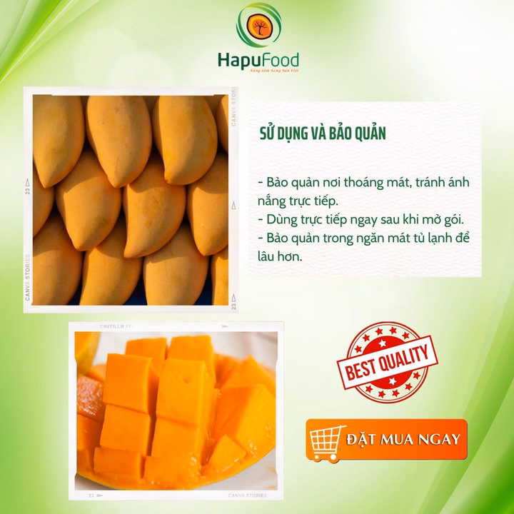 – Thành phần 95% xoài tự nhiên, hương vị chua chua ngọt ngọt.
