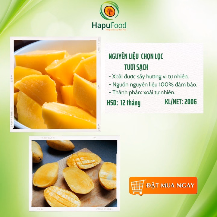 – Được sấy từ những quả xoài tươi ngon tại vườn.