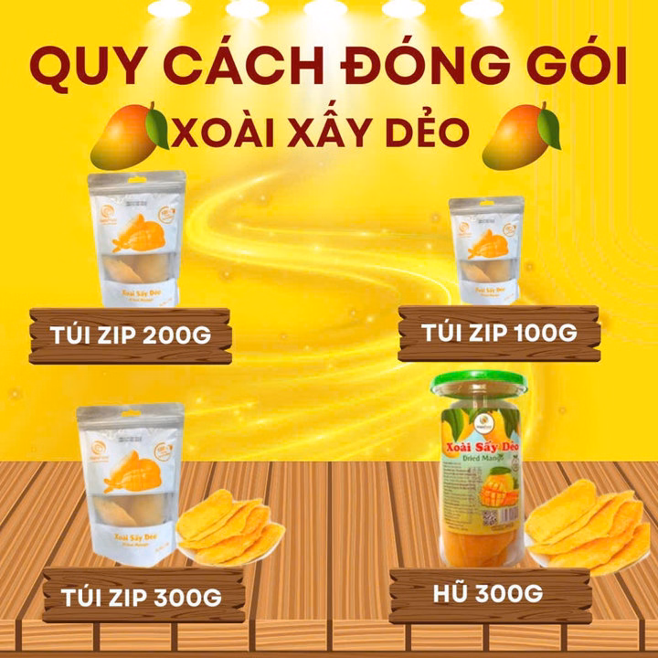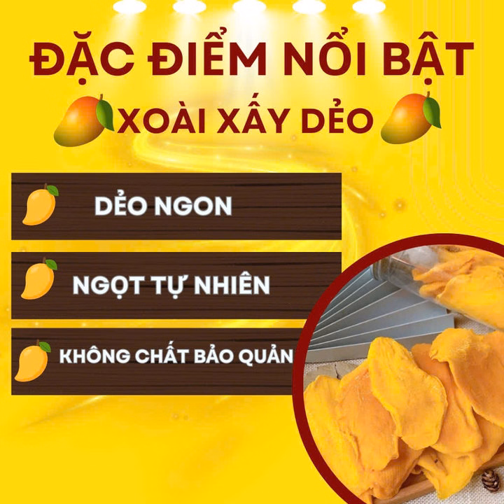 – Công dụng: Xoài sấy thơm ngon, mềm dẻo, hấp dẫn khẩu vị, cung cấp nhiều chất dinh dưỡng, đặc biệt là chất xơ cần thiết cho cơ thể.
