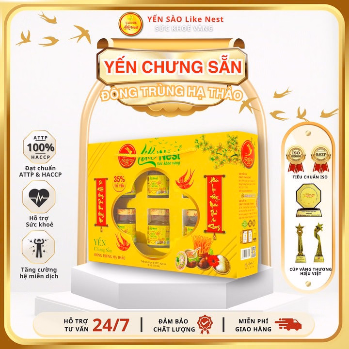 Yến Chưng Sẵn Cao Cấp Vị Đông Trùng Hạ Thảo Like Nest 35% ( Quà Tặng Vip 6 Hũ )